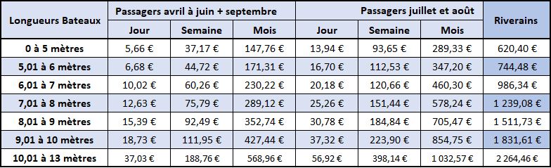 - un mouillage sur un poste d'amarrage riverain d'une durée de 6 mois du 1er avril au 30 septembre et renouvelable chaque année,